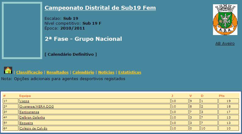 Finalizada a Fase Regular do Grupo Nacional do Campeonato Distrital de Sub19 Femininas da Associação de Basquetebol de Aveiro, a equipa do DELBRAN GAFANHA conquistou o 4º lugar da tabela classificativa, garantindo o direito a participar na Fase Final Distrital de Sub19 Femininas. As 2 primeiras equipas garantem o Campeonato Nacional.