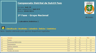 CLASSIFICAÇÃO FINAL DA FASE REGULAR DAS SUB19 FEMININAS